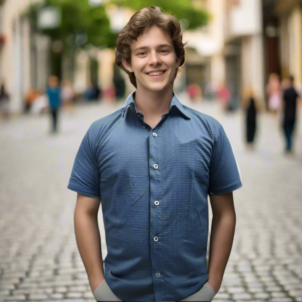 Whether you're heading to a weekend brunch or a casual workday, the rich navy hue pairs effortlessly with jeans, chinos, or shorts. The short sleeves and tailored fit add a modern edge to this classic piece.