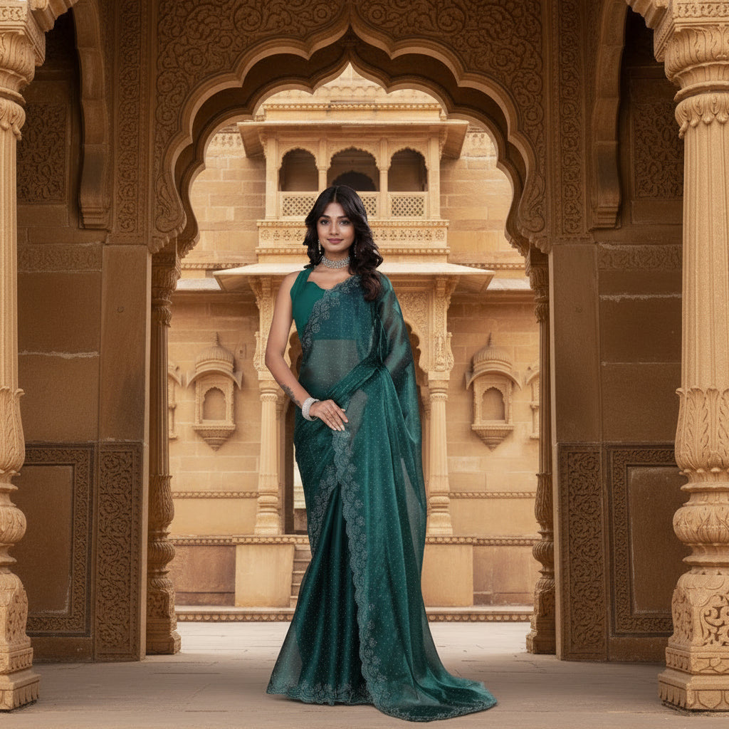 Women's Jimmy choo Bollywood Saree With Unstitched Blouse 5.5Mtr