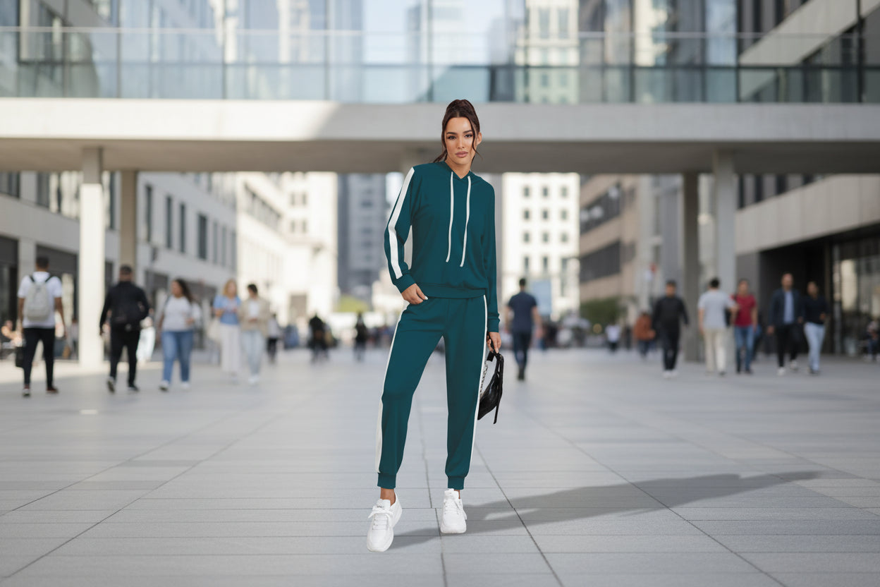 Women's Knitting stretchable Solid Hooded Neck Full Sleeve Track Suit